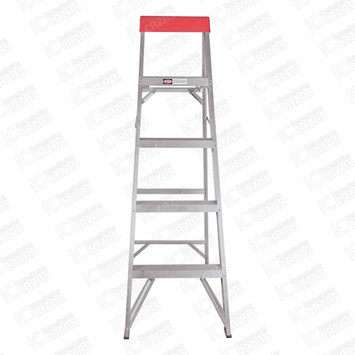 ESCALERA DE TIJERA PLEGABLE DE ALUMINIO CON PLATAFORMA PLASTICA Y PORTACUBETA 150KG 4 ESCALONES 1.52m. 77-11