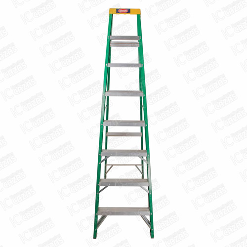 ESCALERA DE TIJERA FIBRA DE VIDRIO CON PLATAFORMA PLASTICA 175KG 7 ESCALONES 2.44m. 77-91