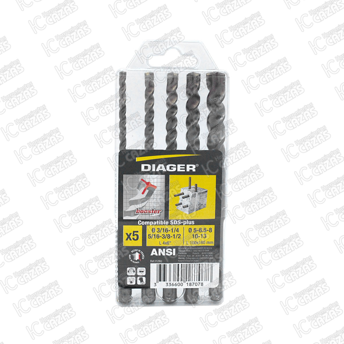 JUEGO DE BROCAS BOOSTER PLUS 3/16 - 1/4 - 5/16 - 3/8 - 1/2 L 4 X 6".