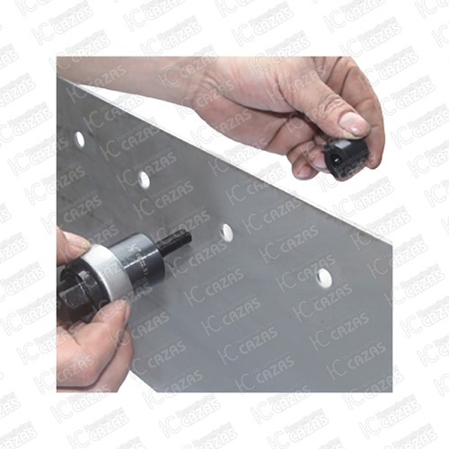 - Puede usarse en lámina de acero de 10Ga, aluminio, fibra de vidrio y plástico acero inoxidable calibre 22