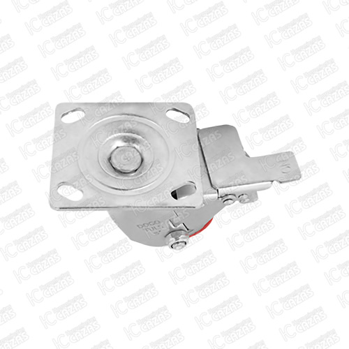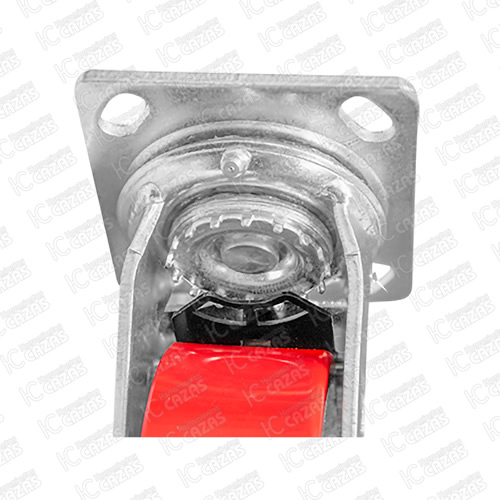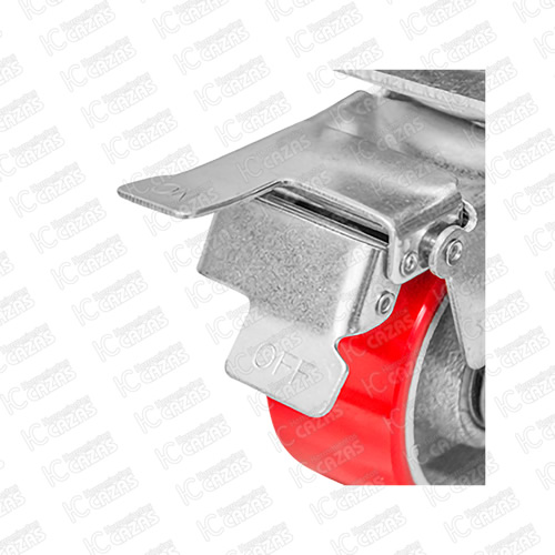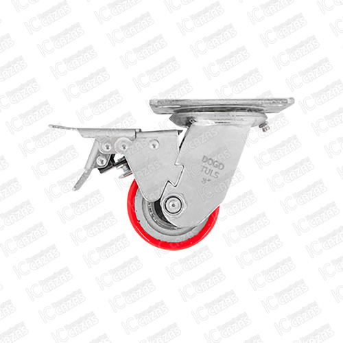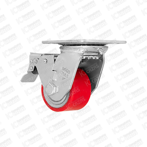 RODAJA DE FIERRO CON POLIURETANO ROJO GIRATORIA CON PLACA CON FRENO 3". ZF5065