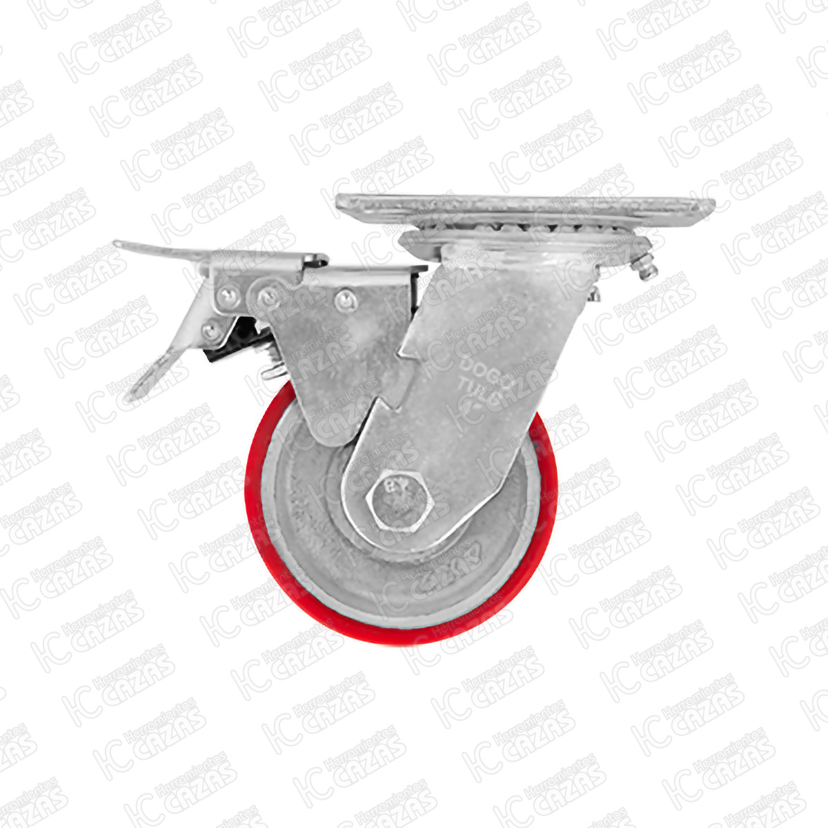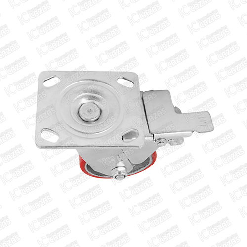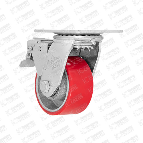 RODAJA DE FIERRO CON POLIURETANO ROJO GIRATORIA CON PLACA CON FRENO 4". ZF5066