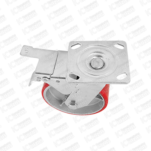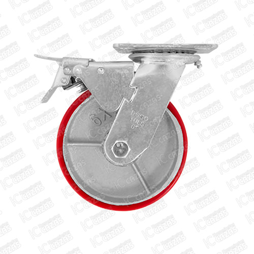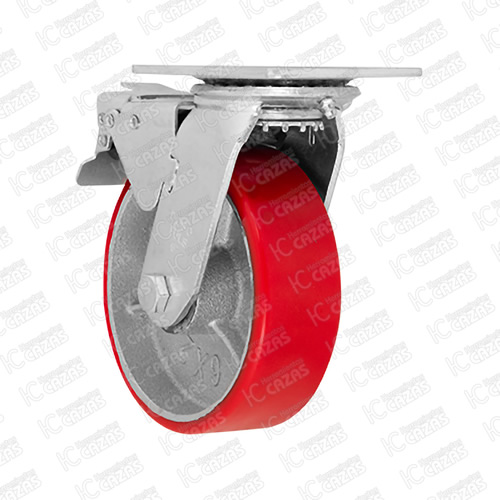 RODAJA DE FIERRO CON POLIURETANO ROJO GIRATORIA CON PLACA CON FRENO 6". ZF5068