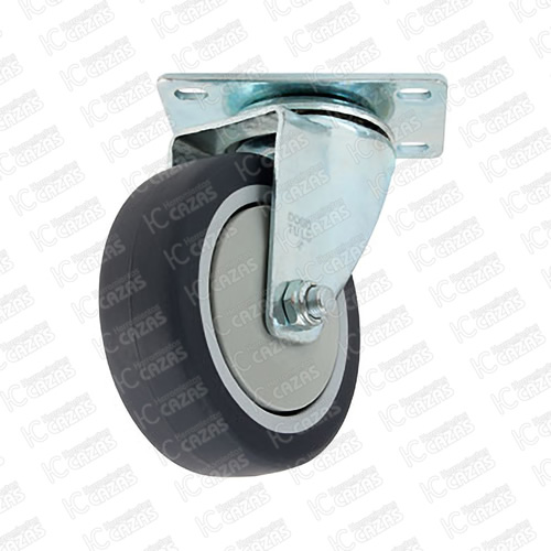 RODAJA DE HULE TERMOPLASTICO GRIS GIRATORIA CON PLACA 4". ZF5090