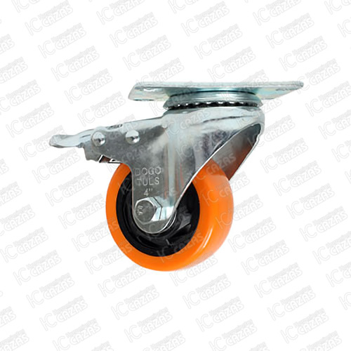 RODAJA DE PVC NARANJA GIRATORIA CON PLACA CON FRENO 4". ZF5119