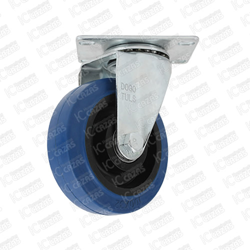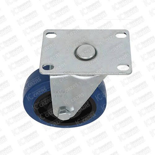 RODAJA DE GOMA ELASTICA AZUL GIRATORIA CON PLACA 4". ZF5124