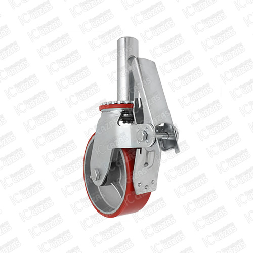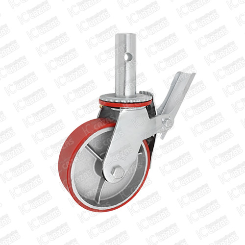 RODAJA PARA ANDAMIO DE FIERRO CON POLIURETANO ROJO GIRATORIA CON FRENO 6". ZF5154