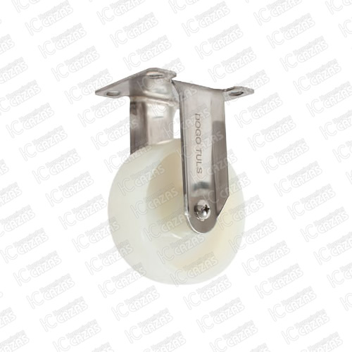 RODAJA DE NYLON CON HERRAJE DE ACERO INOXIDABLE FIJA CON PLACA 4". ZF5161