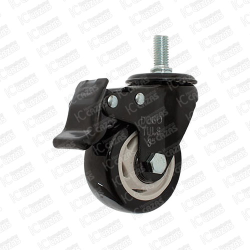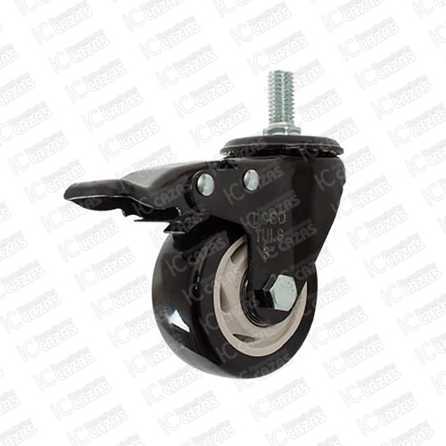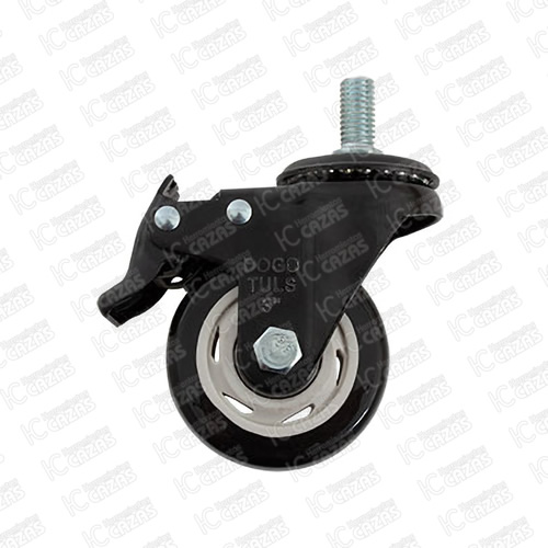 RODAJA DE PVC NEGRO GIRATORIA 3" CON ESPIGA ROSCADA DE 1/2" CON FRENO. ZF5192