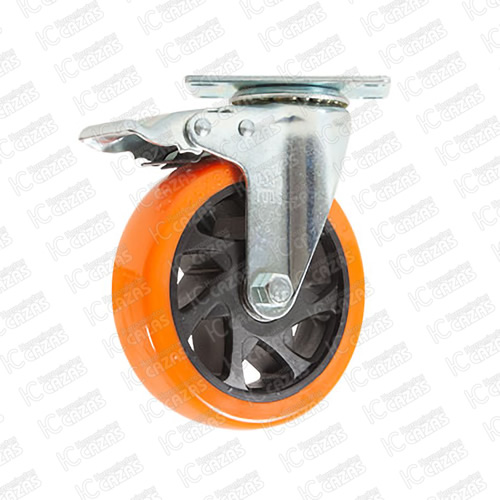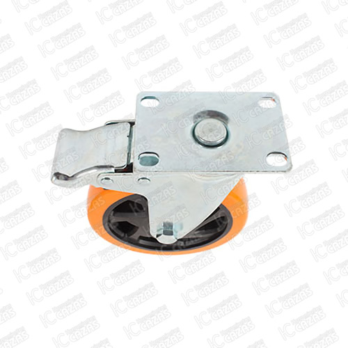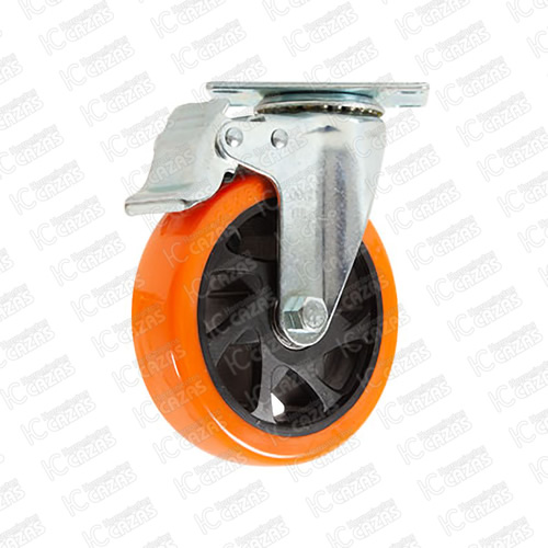 RODAJA DE PVC NARANJA GIRATORIA CON PLACA CON FRENO 5". ZF5238