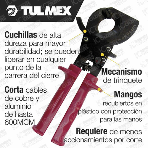 | No. Cat. | Largo Total | Apertura Cuchillas | Capacidad Máxima Corte | Peso (Kg.) |
