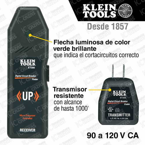 - Detecta automáticamente, con rapidez y precisión, el cortacircuitos correcto de cualquier tomacorrientes estándar de 120 V.