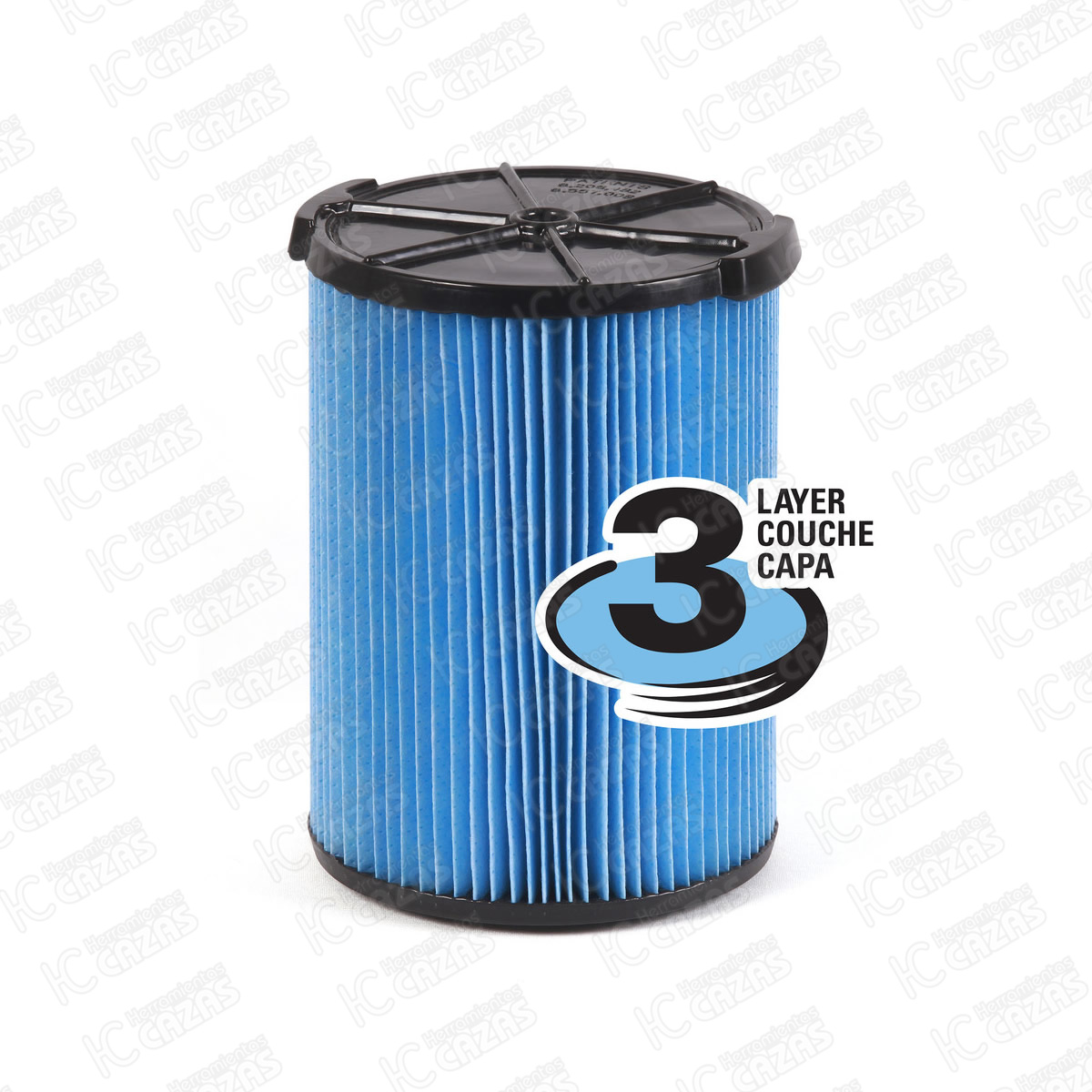El filtro de papel plegado de tres capas RIDGID® presenta un diseño plegado doble que captura las partículas finas como el polvo, lijados de paneles de yeso y ceniza de chimenea. Con su función Qwik Lock™ patentada, simplemente se instala o desinstala en la aspiradora para una limpieza fácil.